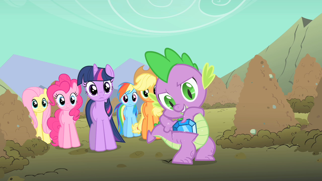Aber immerhin, Spike hat schon mal Taschen in seiner Haut (die blicke der Mane 6 sind aber auch nicht schlecht). Wäre in einer Cartoon/Fantasywelt ja auch durchaus möglich, auch wenn es dann eigentlich sehr seltsam aussehende Wölbungen an den Hüften geben müsste. Aber gibt ja einige Cartoons wo vermenschlichte Tiere irgendwelche Gegenstände hervorholen, obwohl sie unbekleidet bzw. nur relativ leicht bekleidet (z.B. Halskette oder Schuhe) sind. Meine Lieblingstheorie ist aber nach wie vor, dass sie ihre Wertsachen in ihren Schwänzen oder Mähnen verstecken.