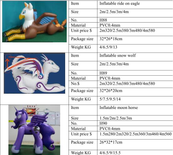 Das mit den Farben bei Hongyi liegt an den Vorlagen der Kunden, so war die pinke Rainbow Dash zum Anziehen eine Extra-Anfertigung für meinen öfters erwähnten low-function autistischen Freund, der wollte die so und hat inzwischen über 20 derrer Aufblasponies. Die kosten übrigens je nach Materialstärke anders viel, 1.5mm=$230, 2mm=$280, 2.5mm=$360, 3mm=$430, 4mm=$530 und nebenbei gibt es auch verschiedene Optionen für die Farbe bzw derren Schutz, wahrscheinlich kaufen sich die meisten die wohl nur mit den Optionen für den billigsten Preis, das Liefern ansich ist ja weltweit gratis.